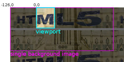 #sprite5 { background-position: -312px 0; }By default, background image spans an infinite plane repeating indefinitely in all directions. Picture’s top-left corner is aligned with element’s top-left corner producing the backdrop for its contents.
